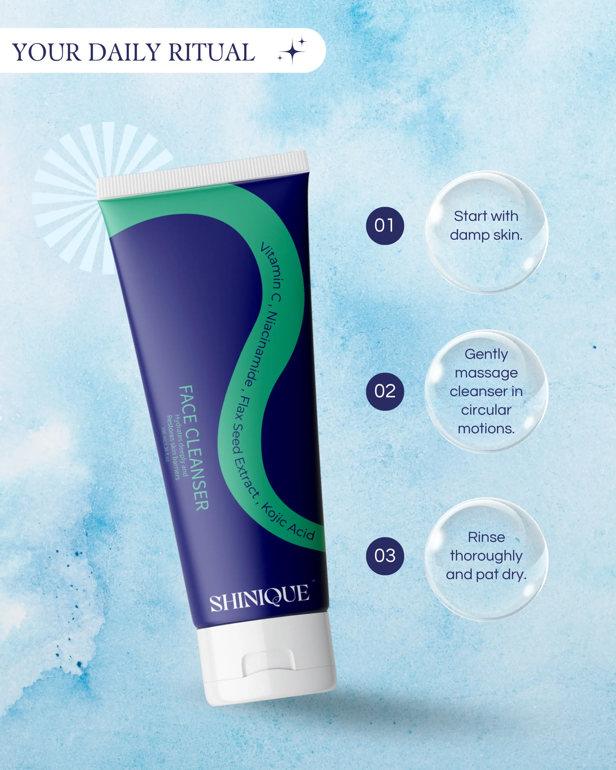 The Shinique Face Cleanser gently yet effectively removes dirt, excess oil, and daily impurities while maintaining the skin’s natural moisture balance. Designed to improve skin clarity and enhance natural radiance, it helps promote a smoother, more even-looking complexion with regular use.