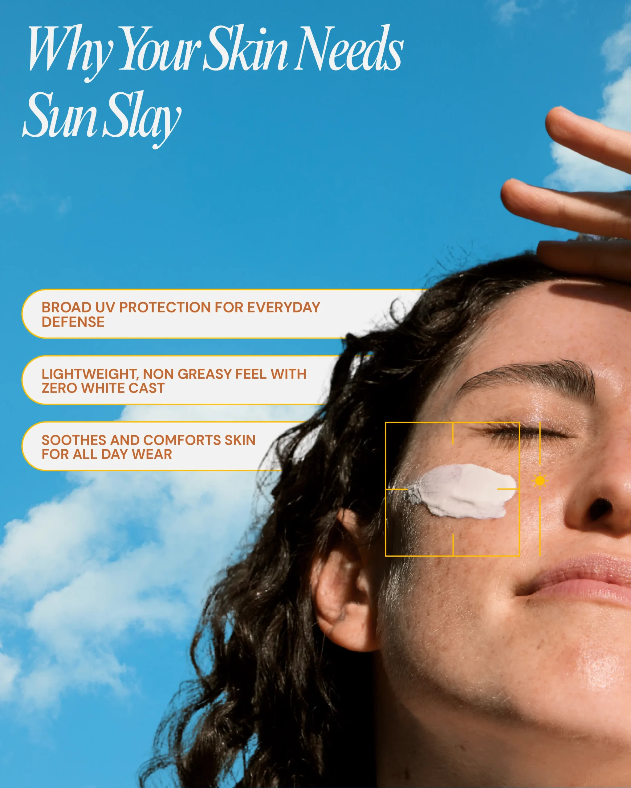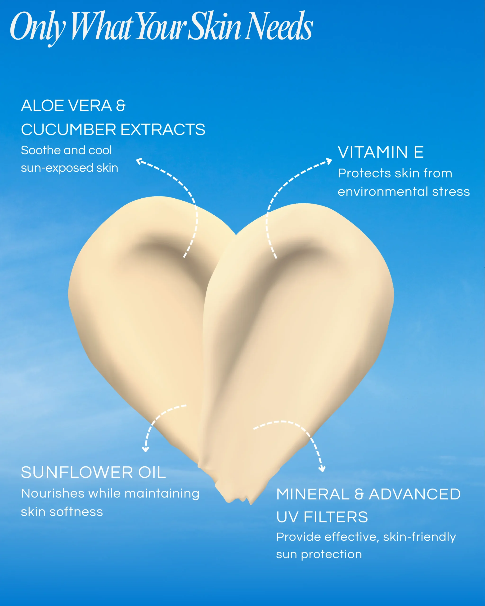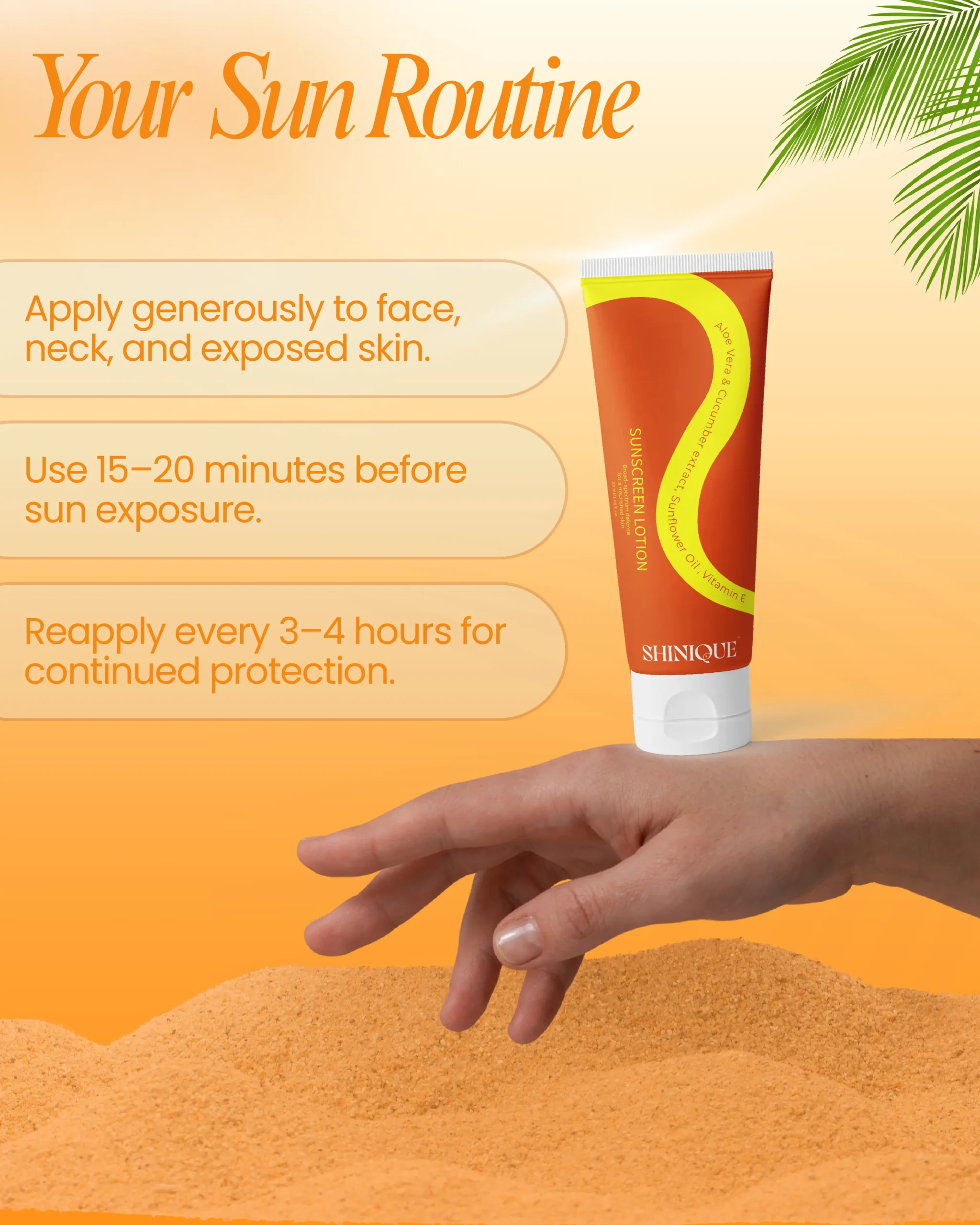 Gently massage the sunscreen over the face, neck, and other exposed areas of the skin. Apply 15–20 minutes before sun exposure. Reapply every 3–4 hours for maximum protection, especially after sweating or swimming.